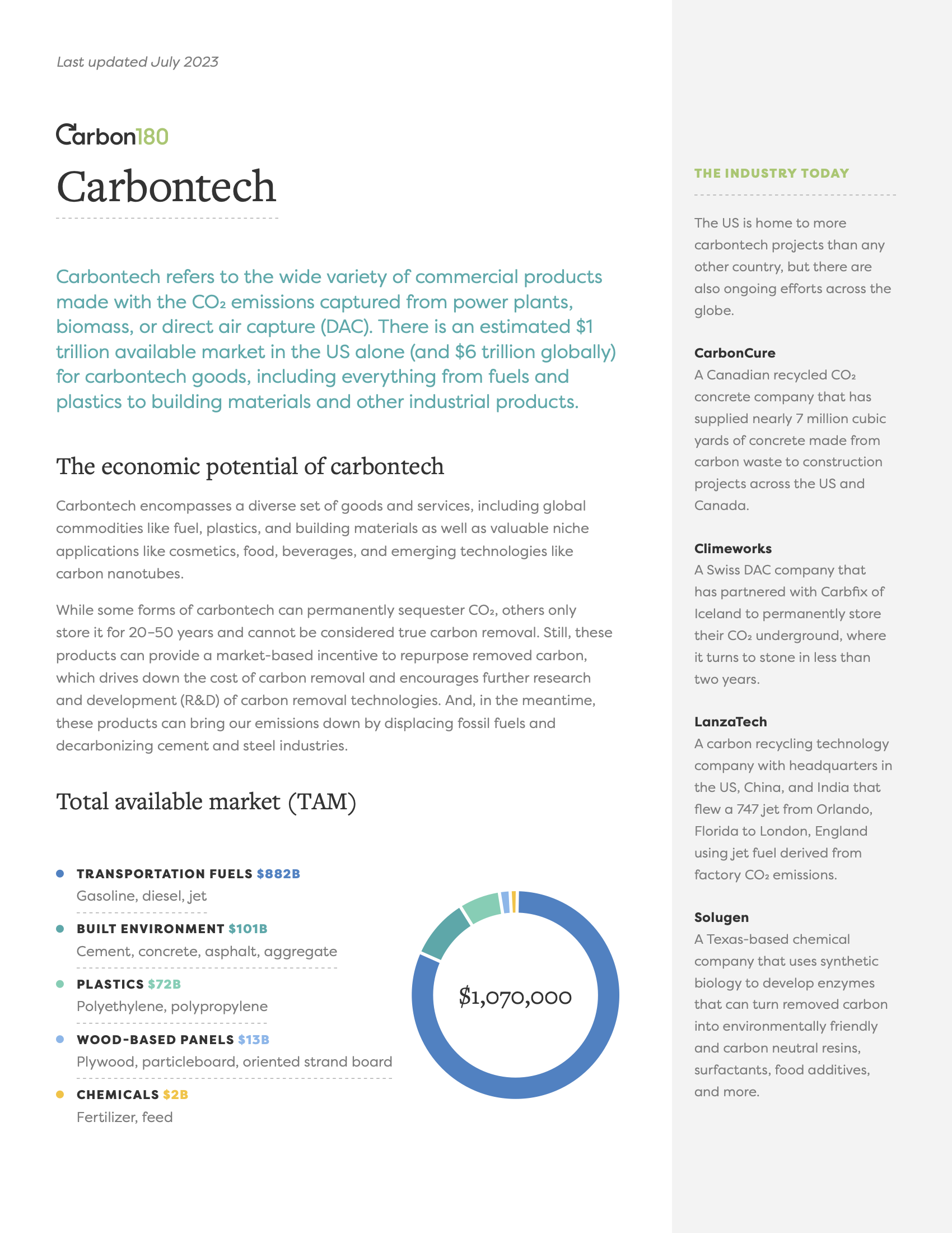 The market for products and services powered by captured carbon is huge, $1 trillion in the US alone. Explore the contours of today’s industry — the main players, brightest projects, and an ever-evolving federal policy landscape.